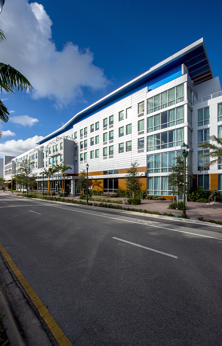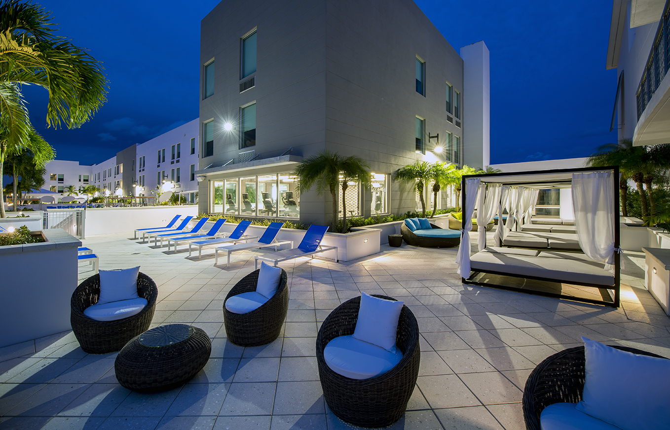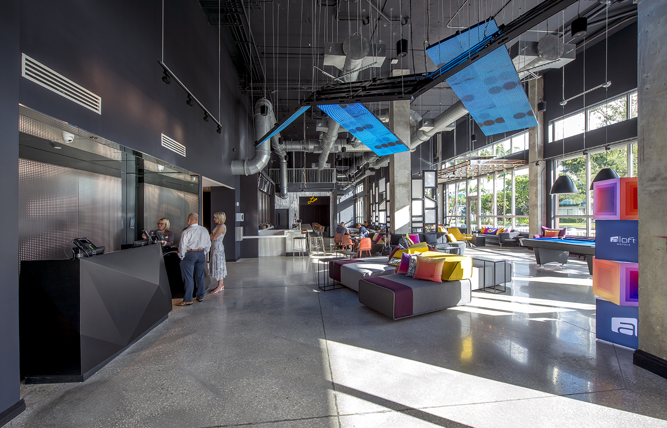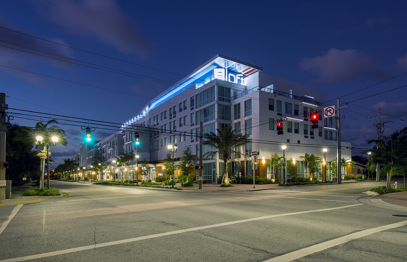 Aloft Hotel Delray Beach is a spacious hotel that offers 122 rooms. It is a mixed-use facility that included construction of 35 condominium units, along with retail space and structured parking with 172 spaces. The hotel features several amenities, such as a rooftop sun deck, infinity edge pool, lounge space and cabana.
