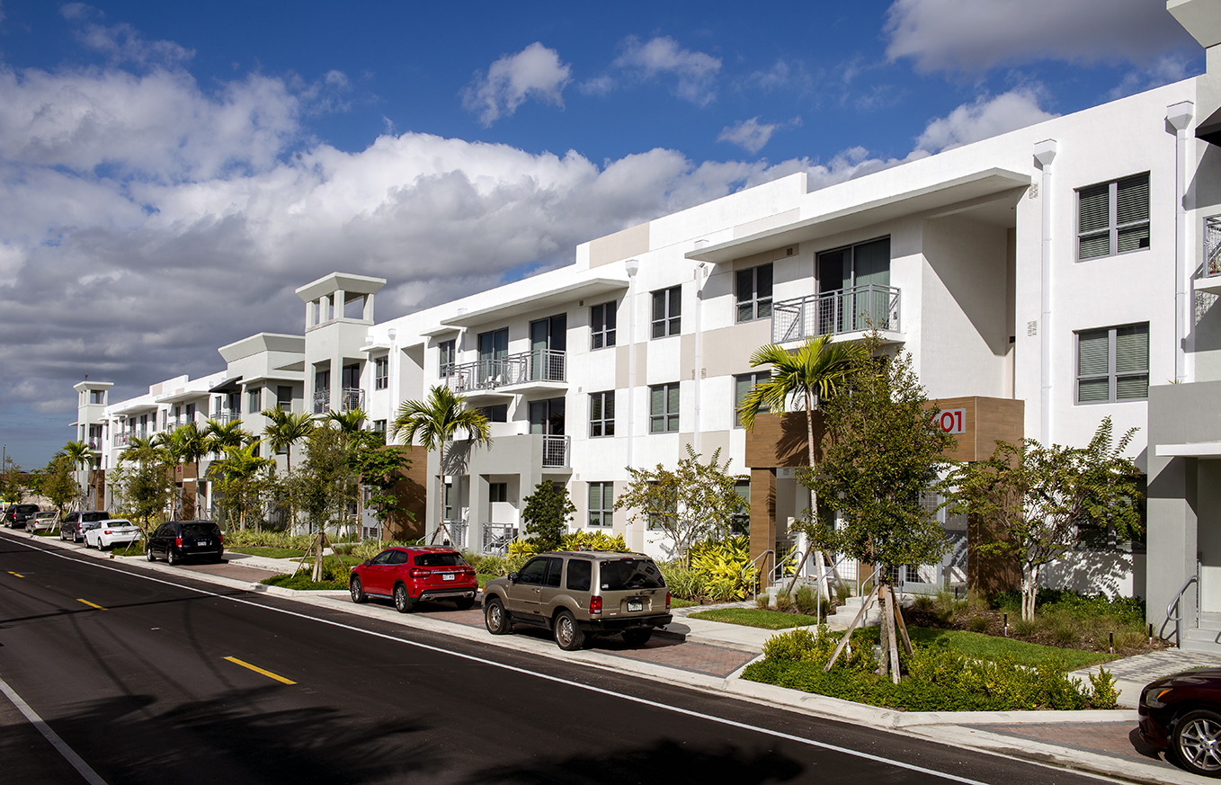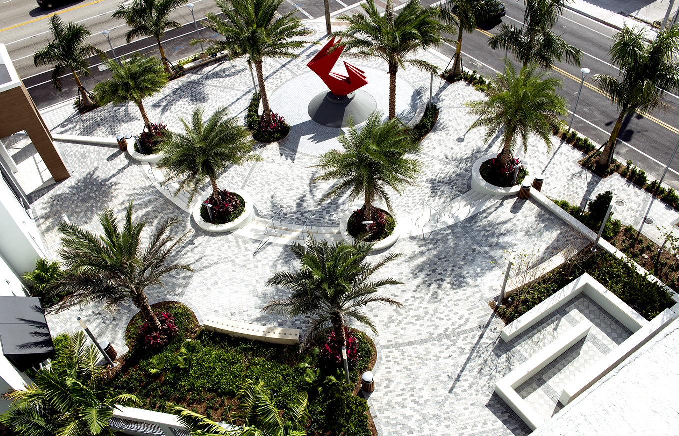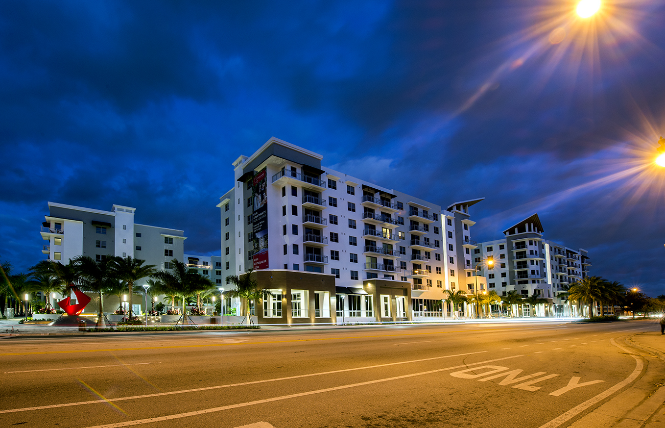 ArtSquare is an impressive mixed-use complex situated in Hallandale Beach that includes 13,000 SF of retail space. Residences total 358 units spread across multiple buildings, including two 7-story buildings, a 6-story building, three 3-story buildings, and a 3-story parking garage. The project is notable for its striking ArtsPlaza, featuring the sculptural work of renowned artist, Wladimiro Politano. A luxury clubhouse, outdoor living deck, fitness center, pool, and cabanas are elements of the amenity areas.