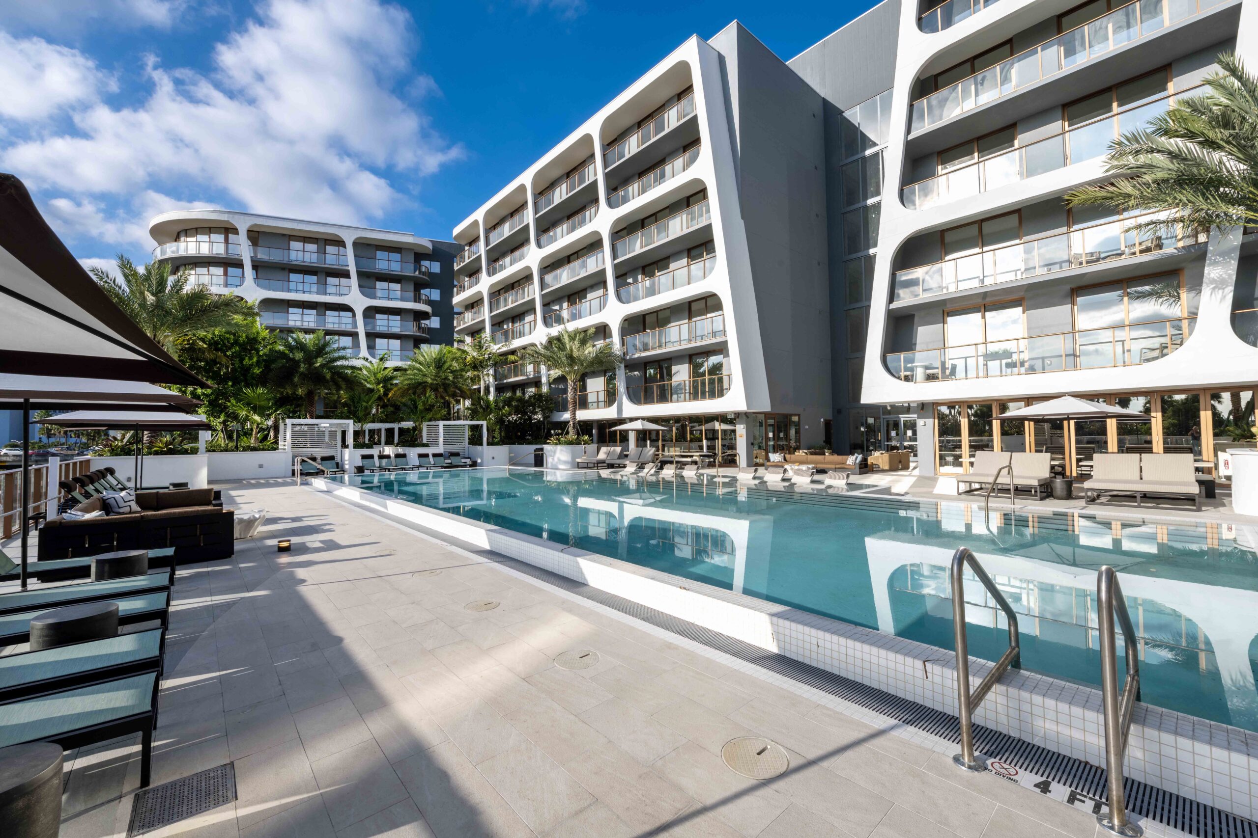 Located at 3900 Alton Road, Avara is a 9-story residential building in Miami Beach with 178 units ranging from 560 to 1,410 SF in size. The building is designed by renowned Arquitectonica and features luxurious amenities such as Italian cabinetry, porcelain flooring, glass balcony railings, an elevated pool deck with stunning bay views, fitness, and yoga studios, and more.