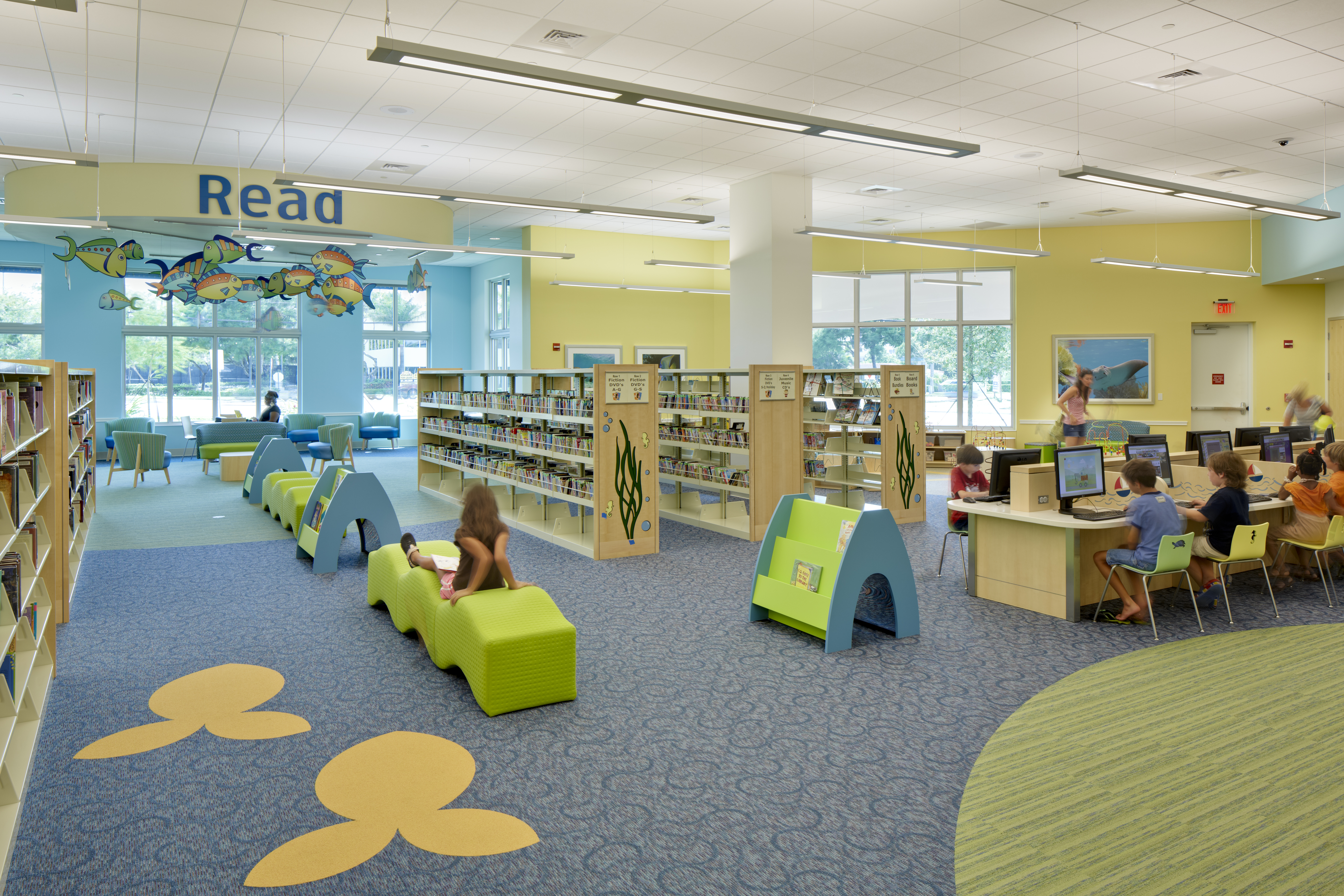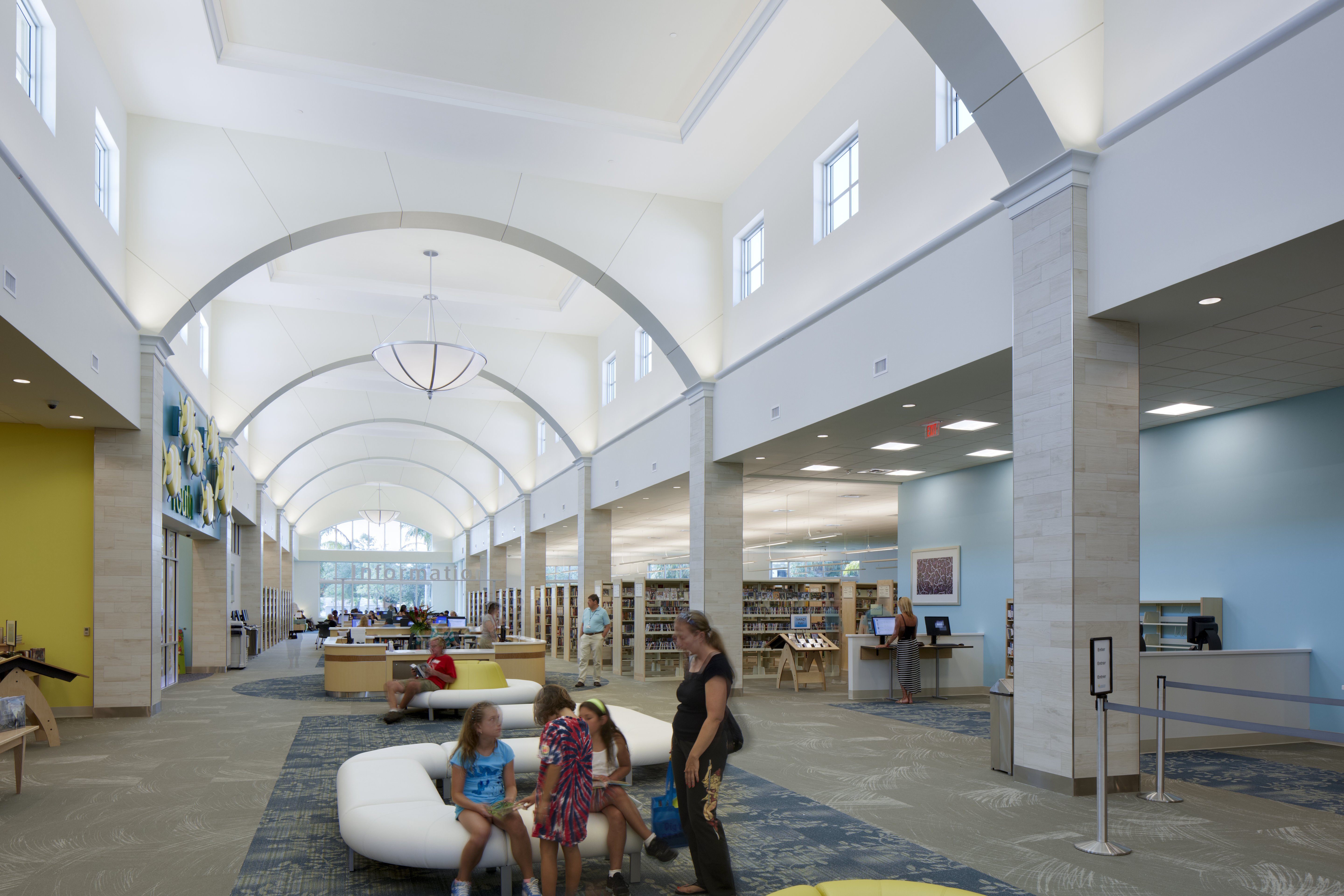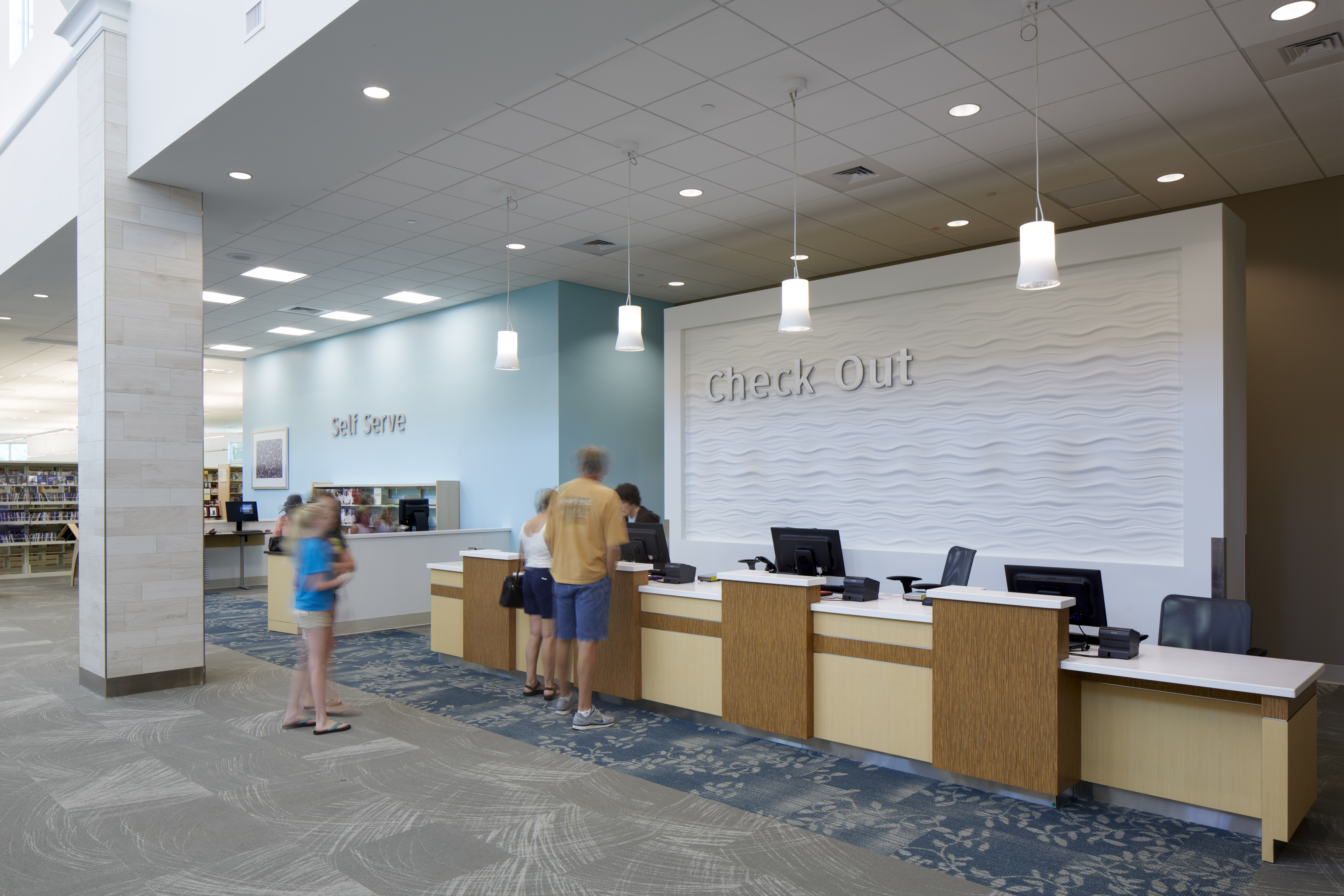 One-story, 42,000 s.f. replacement for the original downtown library. With a capacity for 739 occupants, the new library offers various seating, study & reference areas along with private & open plan office space, a retail area, coffee bar, multi-purpose rooms, and circulation areas.