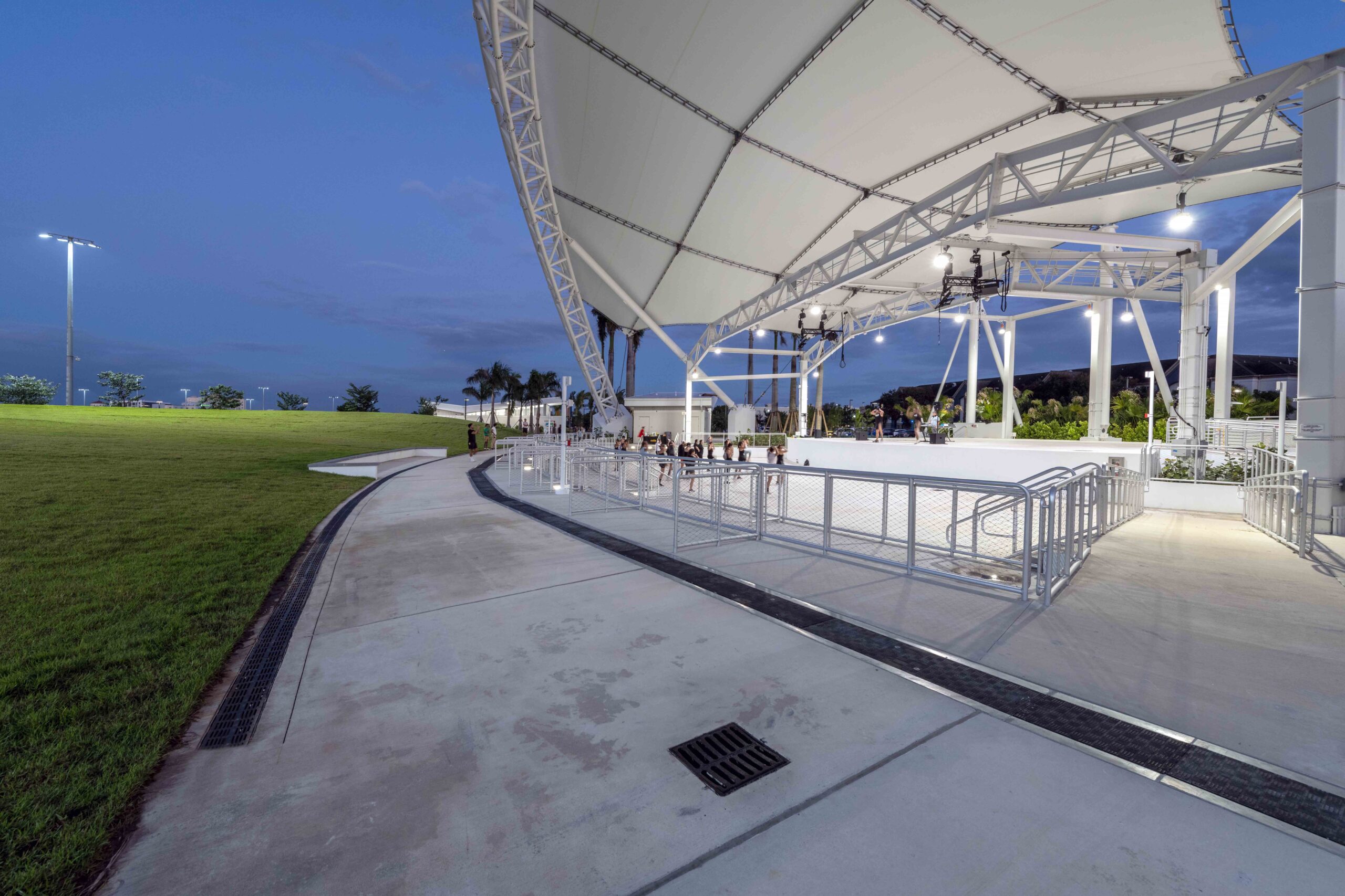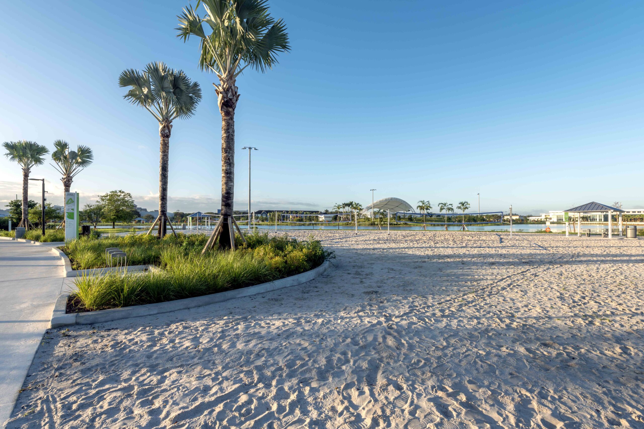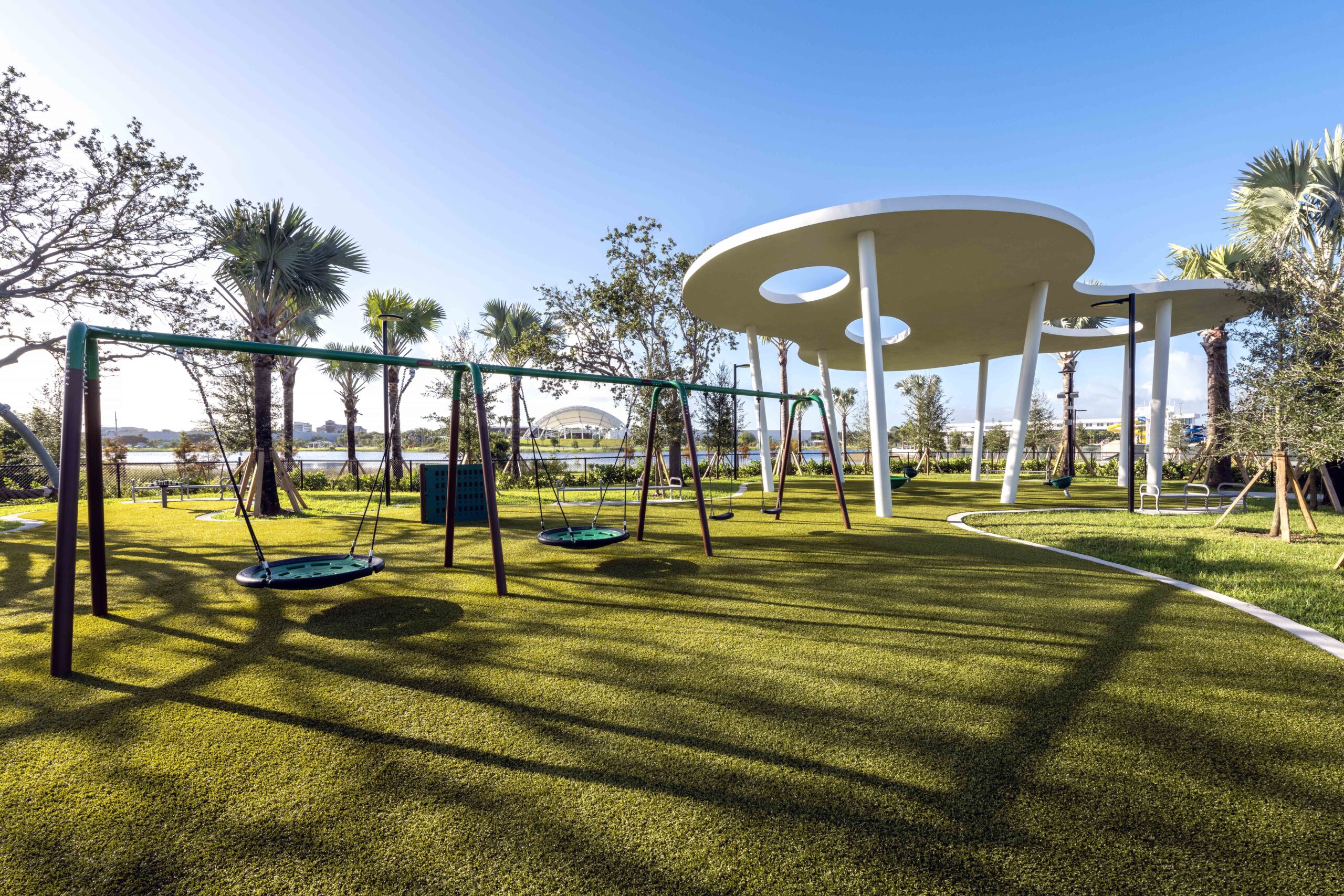 Doral Central Park seamlessly blends outdoor recreation, indoor recreation, and aquatics. Envisioned as the community recreation and events hub, it offers over 30 different components and programmatic areas, including a 80,000 SF recreation center, events pavilion, aquatics center with competition pool and leisure pool, basketball courts, tennis courts, open greenspace and formal events lawn, nature trails, boat launch a wetland boardwalk trail and more.