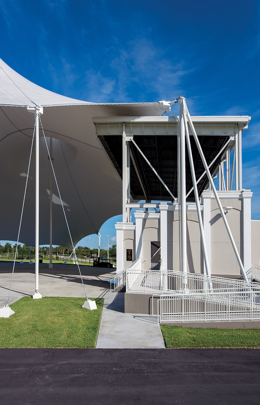 New construction of an amphitheater that will provide an unprecedented opportunity for live concert performances and outdoor entertainment festivals to be housed and produced in a uniquely developed venue in South Florida. Project includes a 4,500 s.f. stage house with open-air venue that will sit 5,000 people (3,000 covered canopy; 2,000 grass area), built for live concerts, film, and television production. Project includes a ticket booth, electronic signage, lakes, and beautiful fountains and extensive site work.