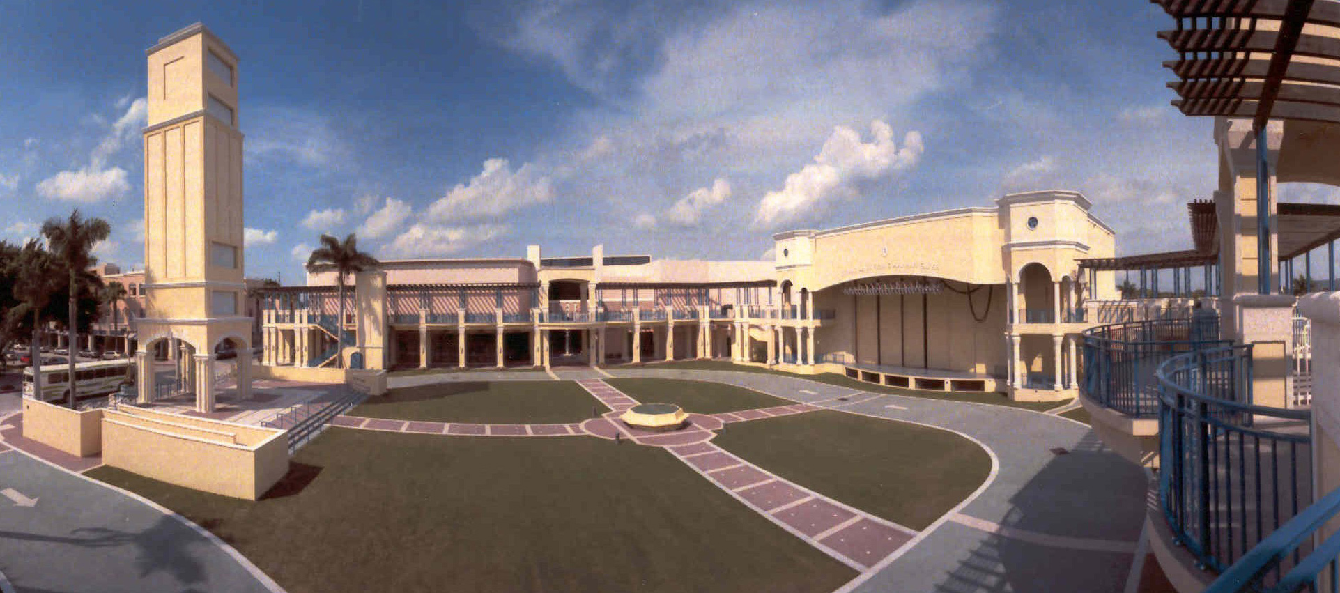 New construction of a 46,000 s.f. building that consisted of an outdoor amphitheater with a pre-engineered main stage and concrete façade; back stage area built of CMU block and structural steel; wood trellis system and cast stone columns along second level colonnade; concealed sound and lighting pit; clock tower housing cinema, lighting and sound equipment; and paver walkways and drive lanes featuring fiber optic lighting.